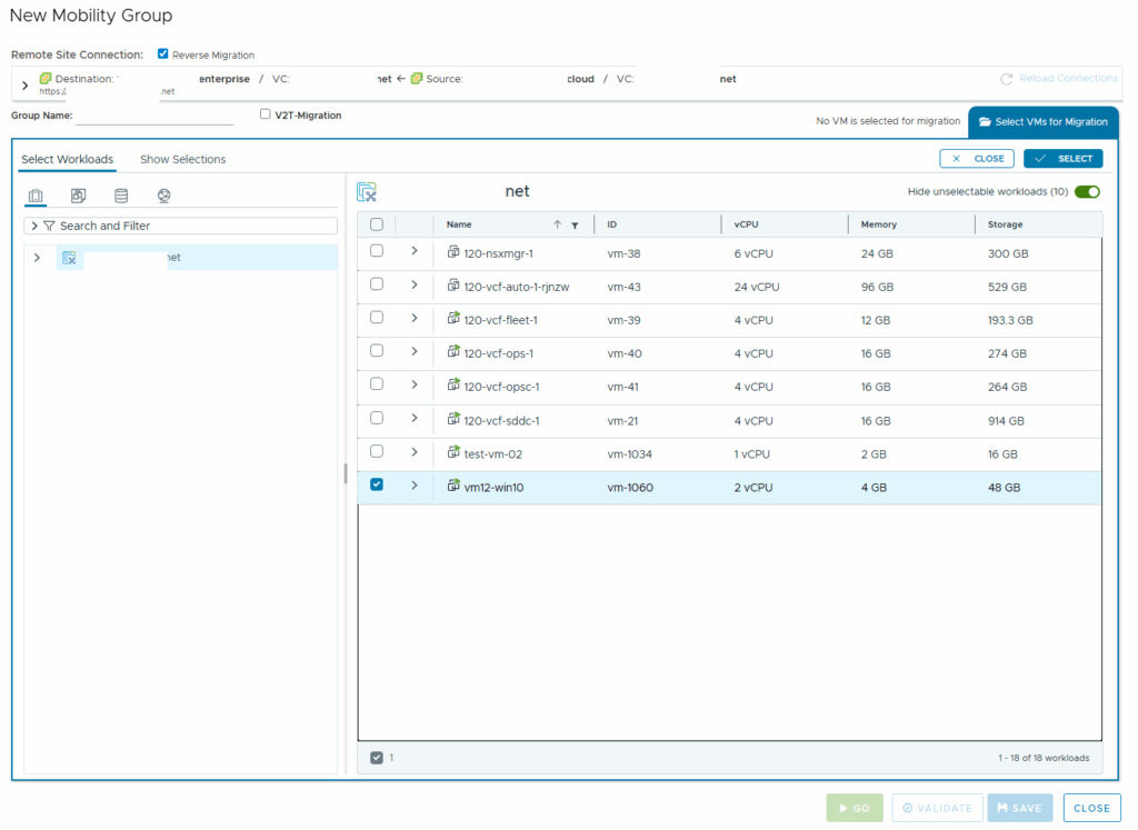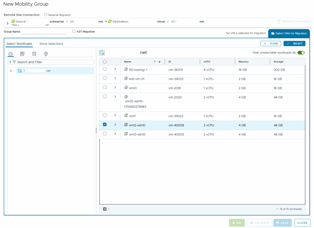 移行対象の VM にチェックを入れ「SELECT」をクリックします。