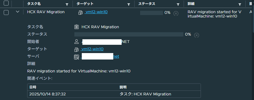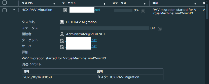 HCXがソース側のVMをターゲット側へレプリケーション開始。