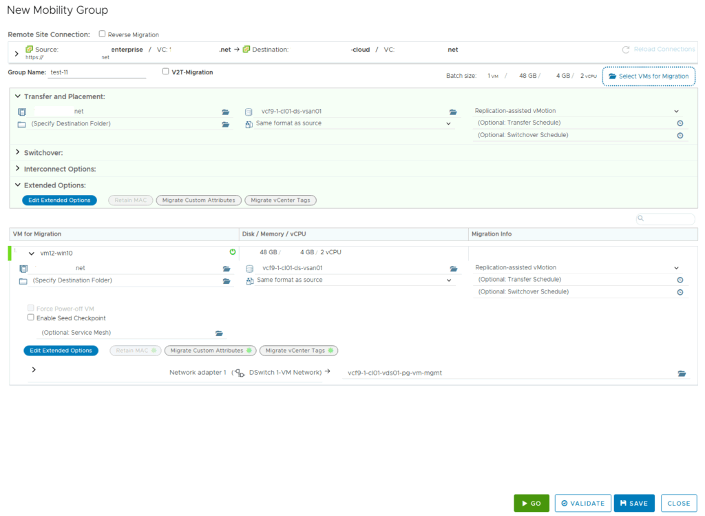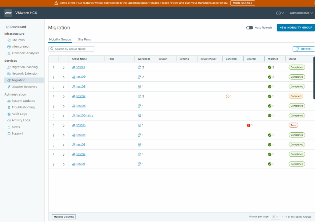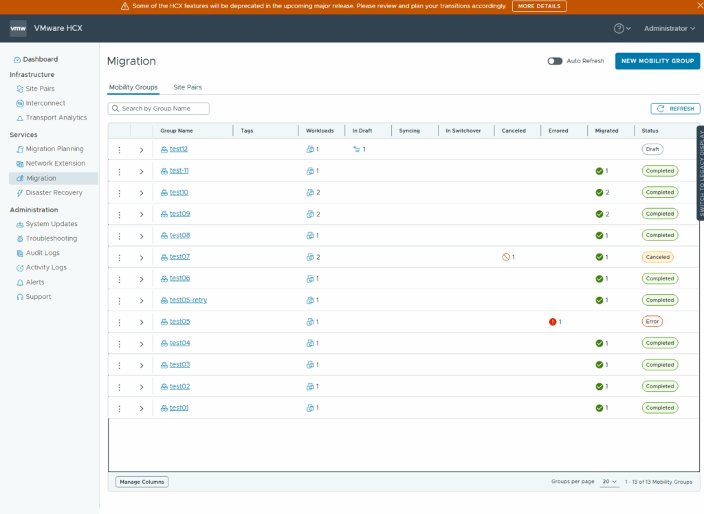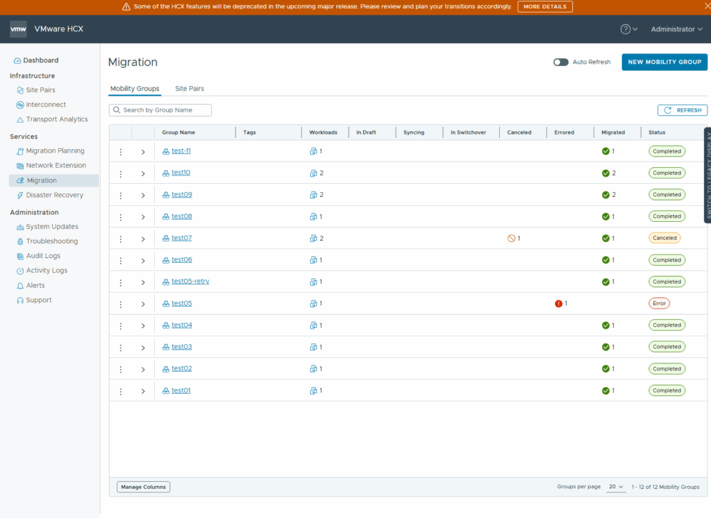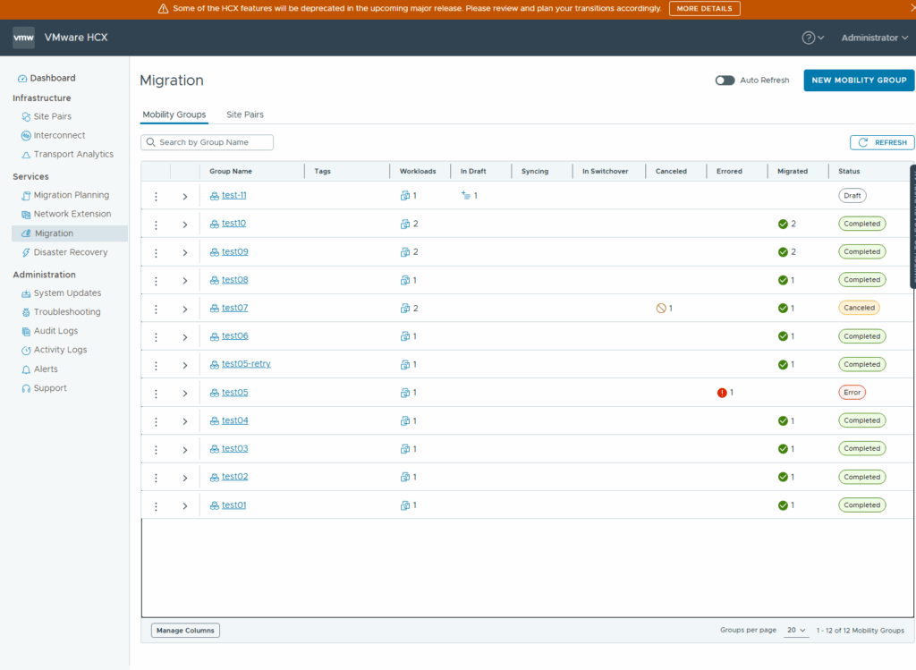 作成した Mobility Group は Migration 画面に一覧として表示されます。