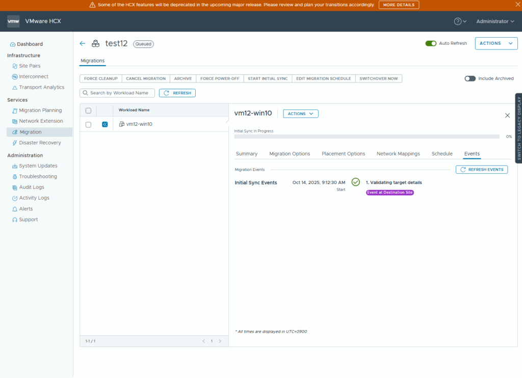 また、レガシー環境からの移行を想定し HCX4.11 から HCX9.0 環境への移行を想定しています。