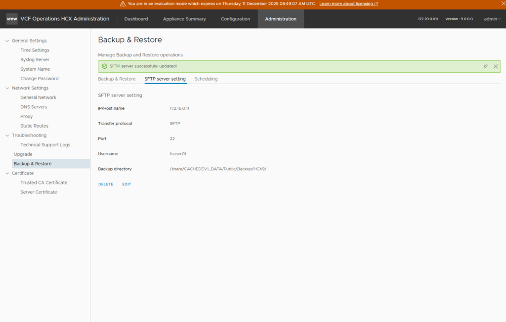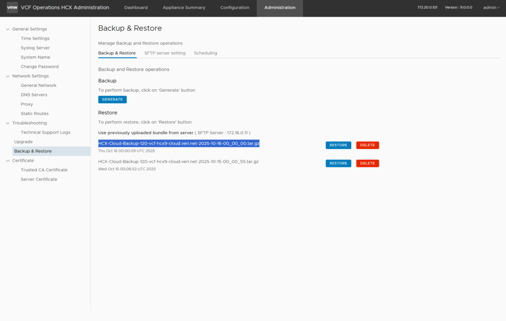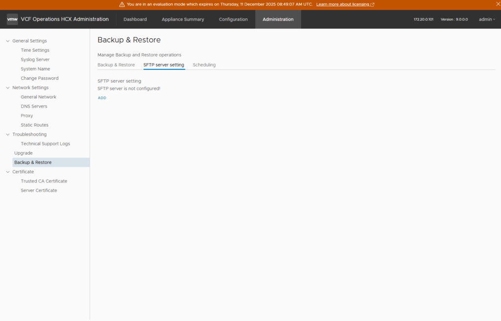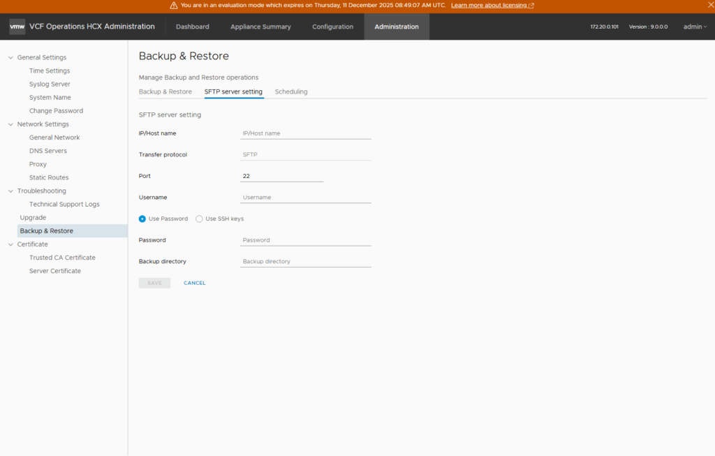2. Administration → Backup & Restore → SFTP server setting タブを選択します。