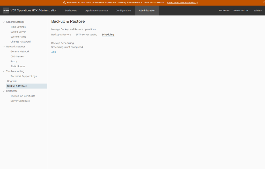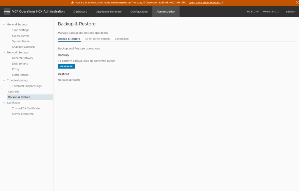 1. バックアップを取得する HCX Manager に port 9443 で接続します。