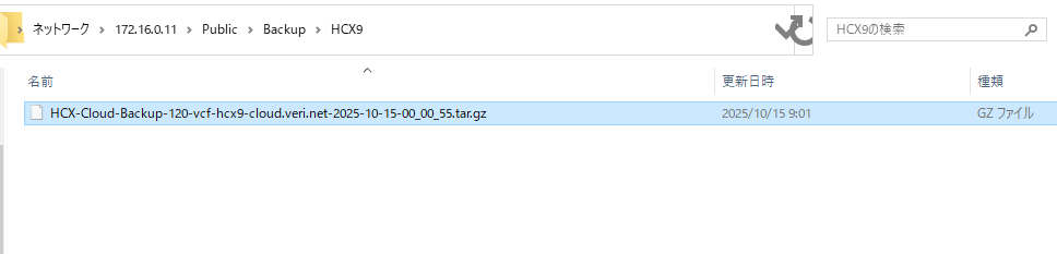 SFTP サーバの指定のディレクトリを確認すると正常にバックアップファイルが作成されていることが確認できます。