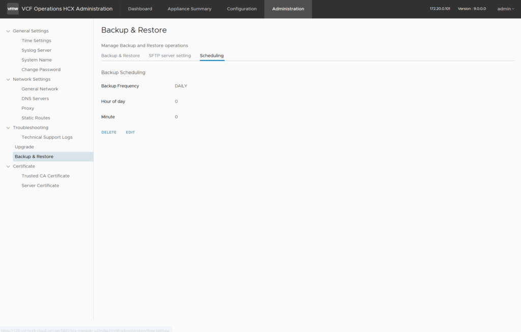 1. バックアップを取得する HCX Manager に port 9443 で接続します。