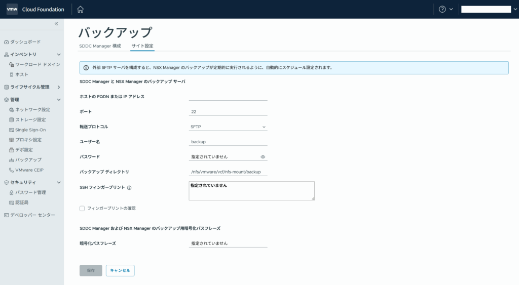 なお、保存先を SDDC Manager から別の SFTP サーバへ変更することも可能ですので