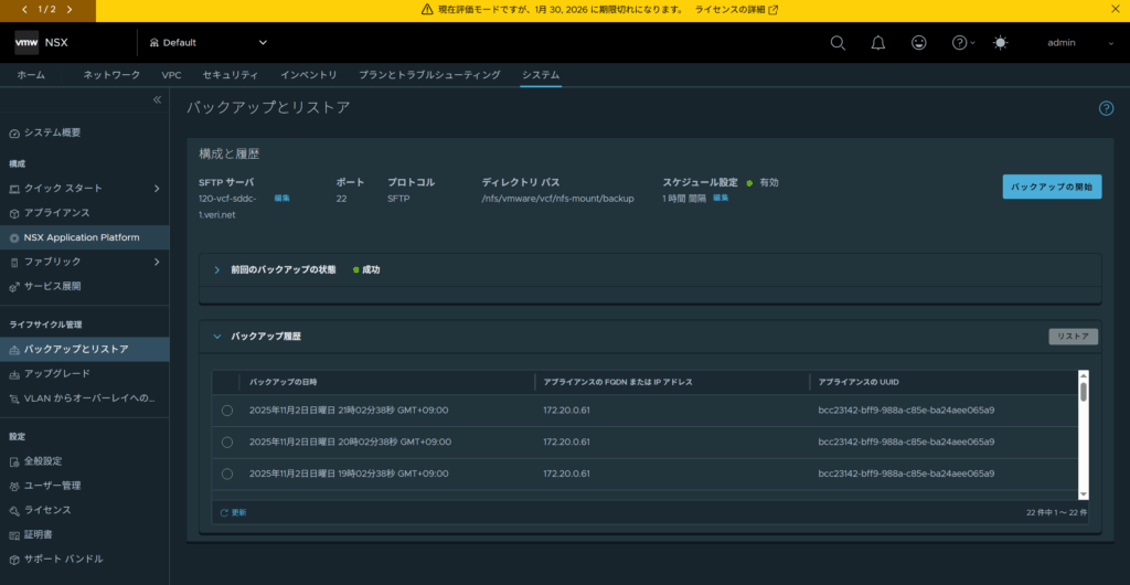 1. VCF Installer を用いた NSX9 デプロイ後の Backup 設定